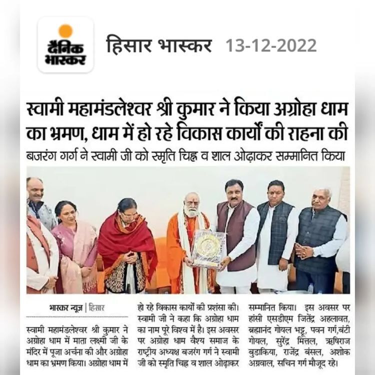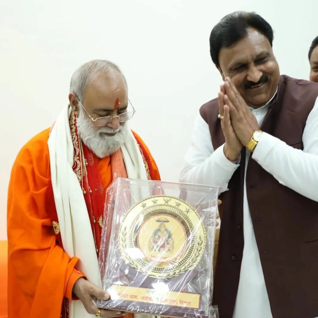 President of Agroha Dham Bajrang Garg Ji honouring Pujya Gurudev Ji & Guruma Ji with memento